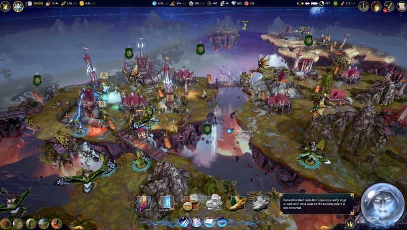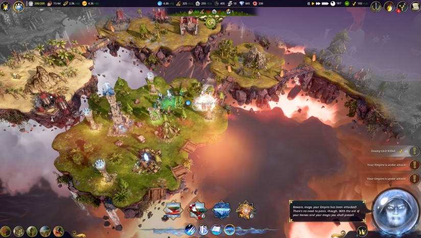 玩家的任务就是探索随机生成的世界,通过侵吞更多的大陆来扩张自己的王国。有趣的是玩家不需要再对每个单位进行具体控制,只需要设定目标、设置主要订单就可以。至于那些生产单位则极具魔幻风格,比如战士、弓箭手、法师,他们可以驾驭不同类型的坐骑,这也导致了更多元化的组合。