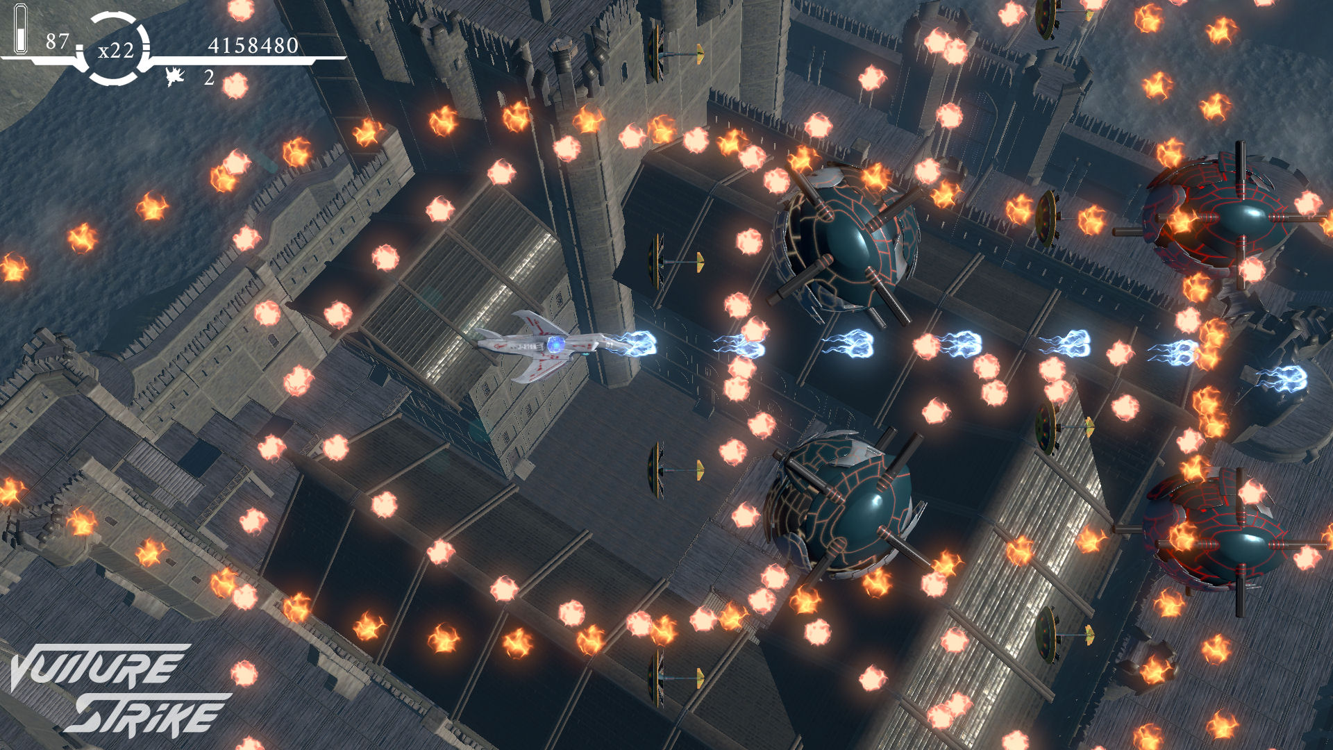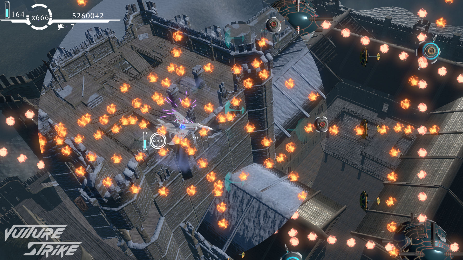 《秃鹰打击》是一款飞行射击游戏。采取最经典的标志性街机游戏风格。除了射击和躲避弹幕之外,这款游戏有一个非常有趣的设计,玩家将可以在2个相互独立的地图中自由穿梭,当你利用这个功能进行躲避时也要注意是否两边都在攻击就是了。当你的狂暴条完全充满时,你会进入狂暴模式......有兴趣的玩家可以来挑战看看噢!