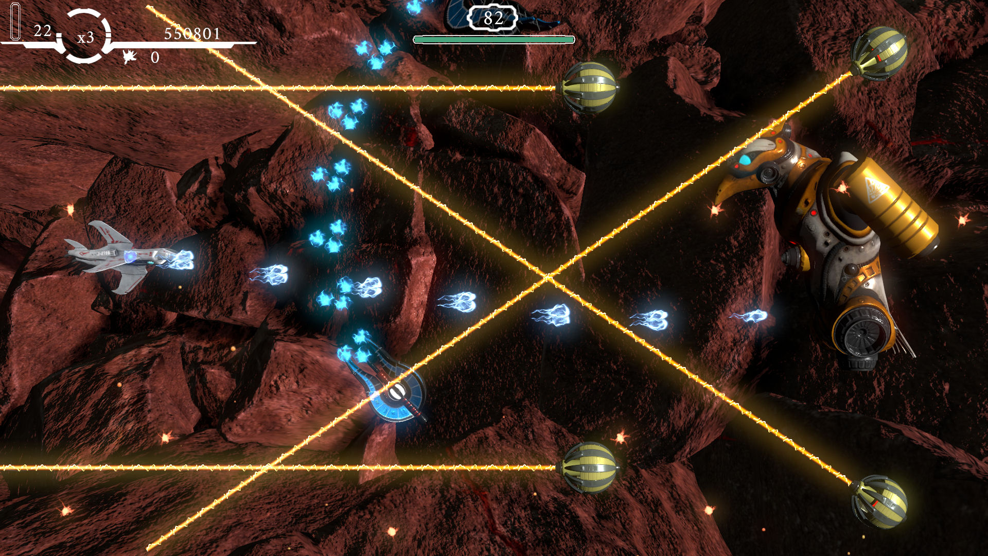 游戏延续经典街机风格,以射击和躲避弹幕为主要玩法,因为敌人的弹道非常的密集,所以必须借助穿越两条平行时间线的能力求生存,除此之外,达到一定条件会激活狂暴模式,这个模式下会处于无敌状态。游戏操作非常流畅,弹幕特效也很华丽,喜欢抖M的玩家可以尽情挑战。