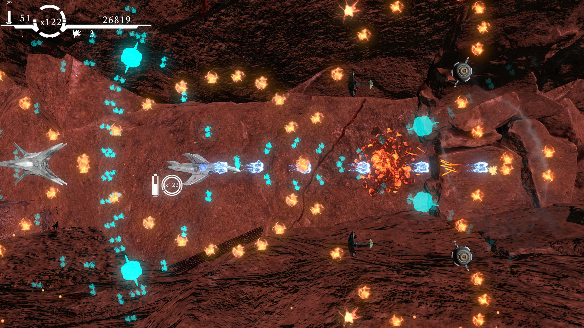 如果在打开虫洞之前将自己置于危险的境地,你的得分倍率会大大增加,让你得到大量的分数。每当你打开一个虫洞,狂暴条都会相应增加,当它完全充满时,将会在一段有限的时间内激活狂暴模式。