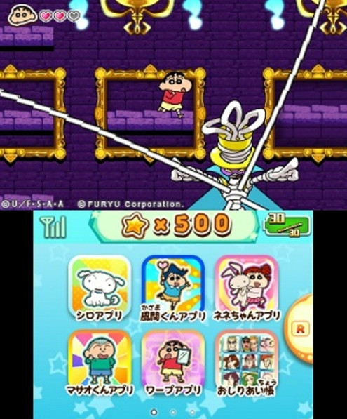 0人本作是以电视动画《蜡笔小新》为题材,改编而成的横向卷轴动作游戏。玩家将操作鬼灵精怪的主角小新,透过跳跃、冲刺等各种动作打到敌人推进游戏。小新必须协助「斯卡贝防卫队」的成员,才能拯救被抓进「关东煮世界」的家人。除了主要的动作游戏之外,本作也收录4种风格不同的小游戏。尽情体验《蜡笔小新》的游戏原创故事吧!