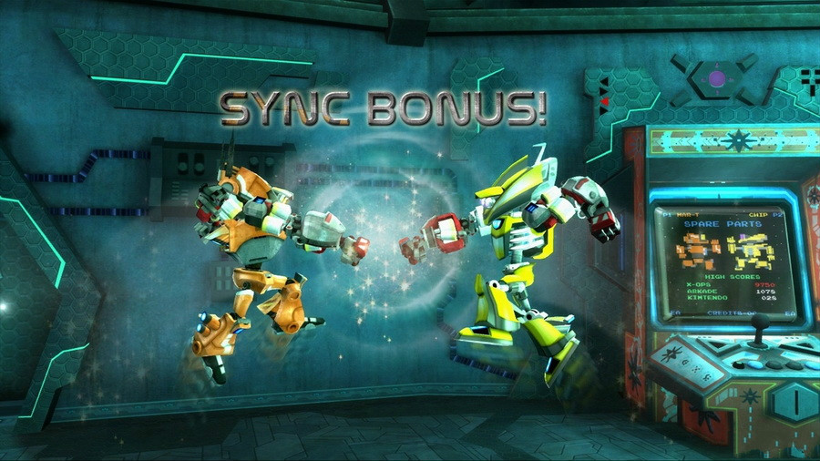 游戏类型为动作冒险,操作很简单轻松,按下A键可以跳跃,连按两下可以连跳的更高,X键为手部的近身攻击,Y键就是脚部的近身攻击回旋踢,RT键是远程攻击,按下后会投掷出扳手、螺帽、螺丝等工具。除了单键的技能外,也可以搭配各项动作来组合出更强大的招式,像是连跳后再按下X键,机器人会跳起用头部撞怪,或是连跳后再按下Y键会跳起俯冲撞怪,不过要注意的是部分招式反作用力比较大,机器人会需要一点回覆时间哦!