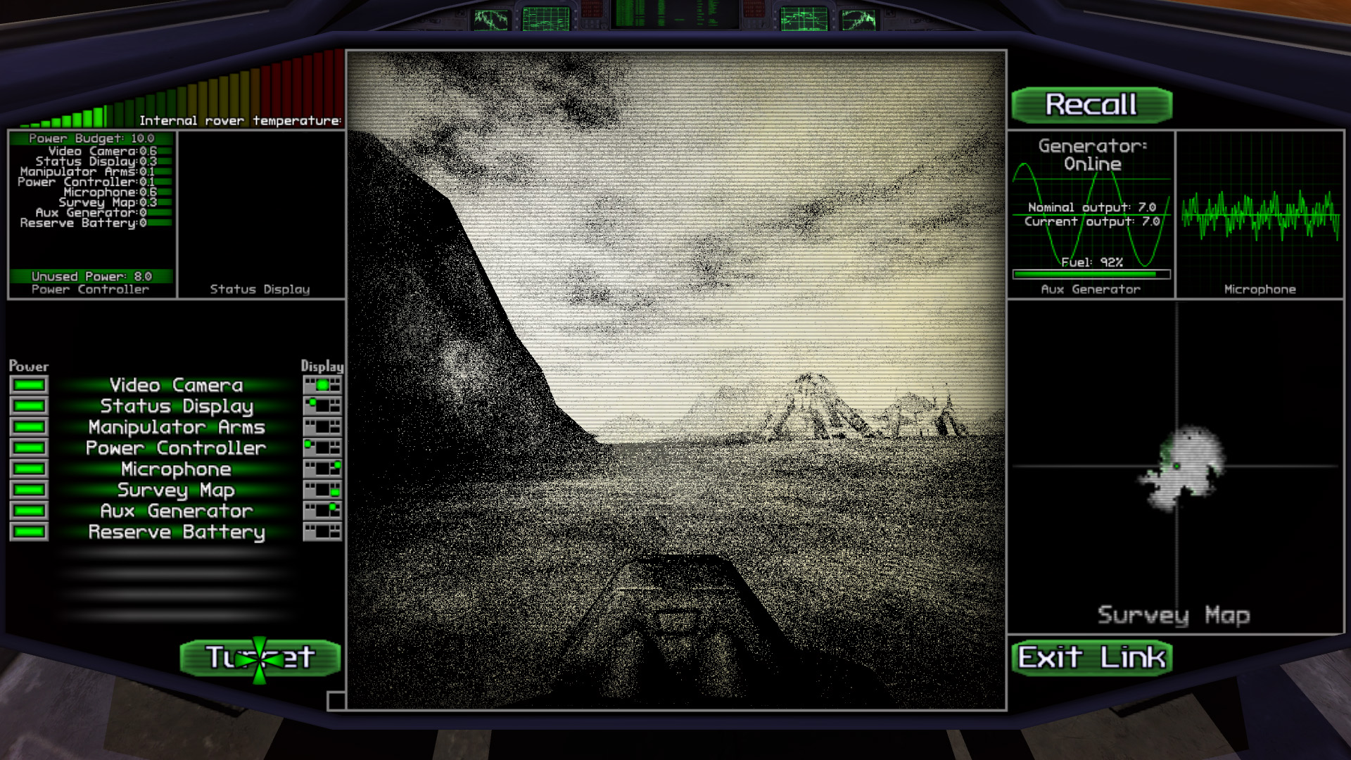 你有遥控漫游车。信号微弱,干扰强,视频输入静态。用它来探索地球的表面,废弃的建筑物,还有外星机器的残骸…或者只是休眠。