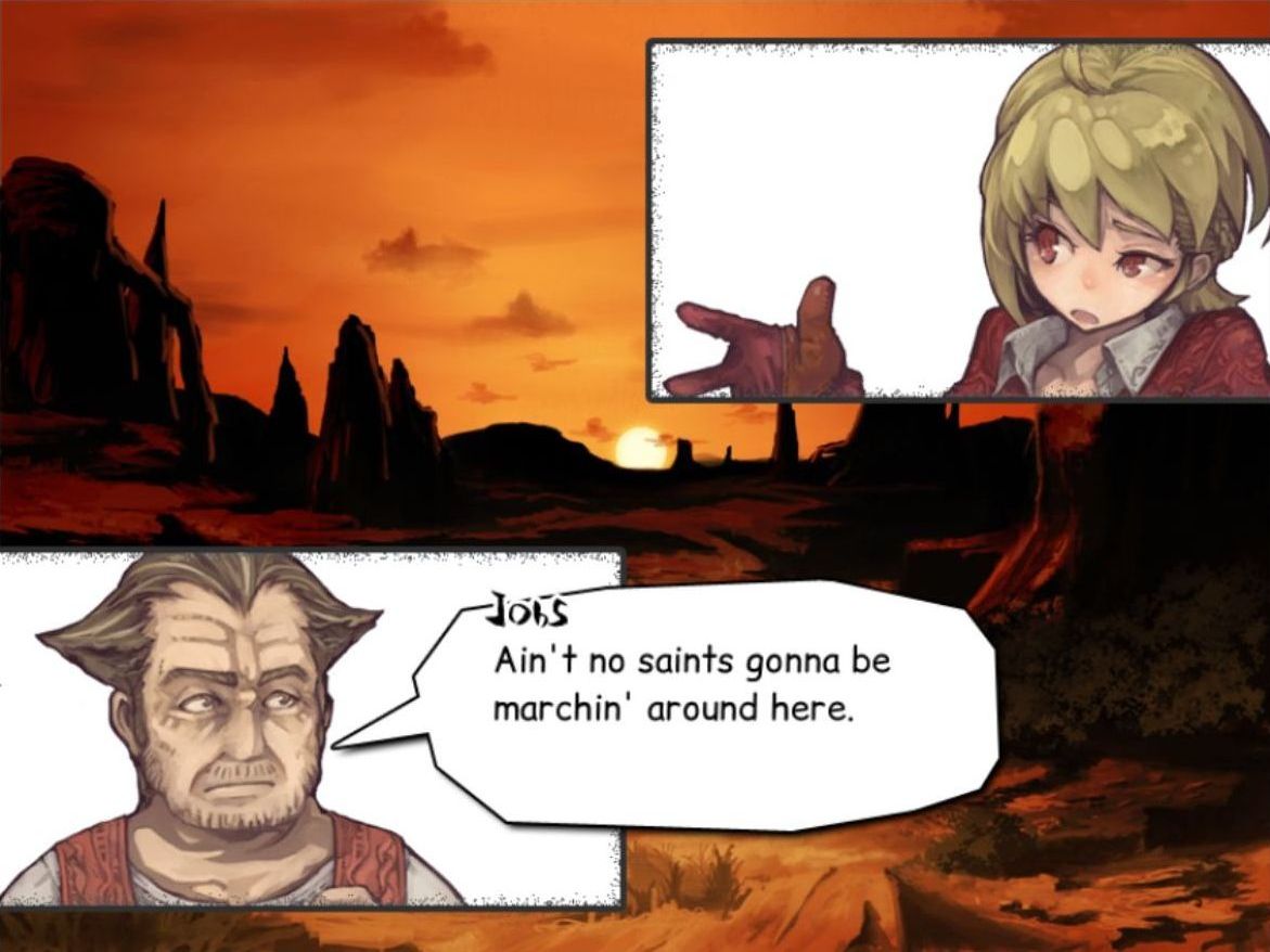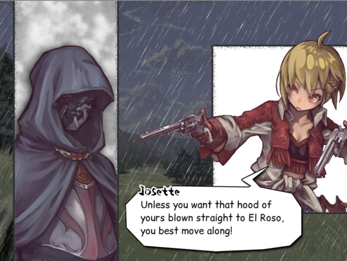 以狂野西部为背景的日漫风格文字冒险游戏由个人工作室773创作,唯一成员Hidume是《Cherry Tree High》系列的创作者,同时他也是老西部片的粉丝,试图以类似的幽默风格来讲《Dead End Junction》这样一篇略带严肃的故事。在西部边缘,Jo忍受着似乎没有边境的无聊,直到命运为她准备了她想要的东西——藏在来信中的一次冒险。