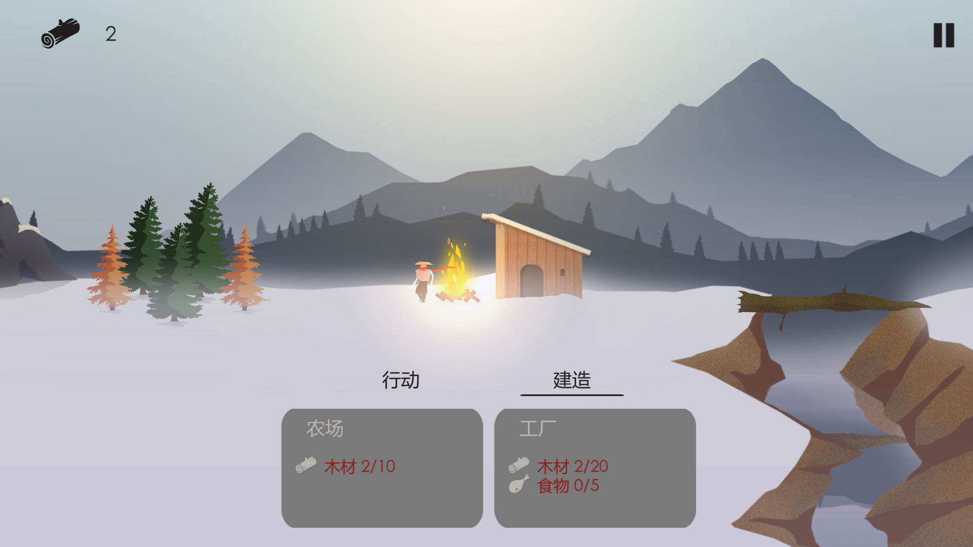 玩家需要控制工人收集木材、食物、皮毛、铁、煤、陨石、宝石等资源。资源用于建造建筑、制作工具和装备,以及维持工人的生活。例如,木材可用于建造篝火、房屋和桥梁;食物用来给工人饱腹,防止他们罢工或逃跑;皮毛可加工成皮革,用于制作装备。