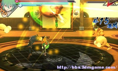 本作的系统和前作一样,几乎没有什么太大的变动,下屏切换任务介绍和技表。绿色按键表示带有吹飞效果,吹飞之后抓准时机按A可以在空中追击,游戏里称为飞翔乱舞。