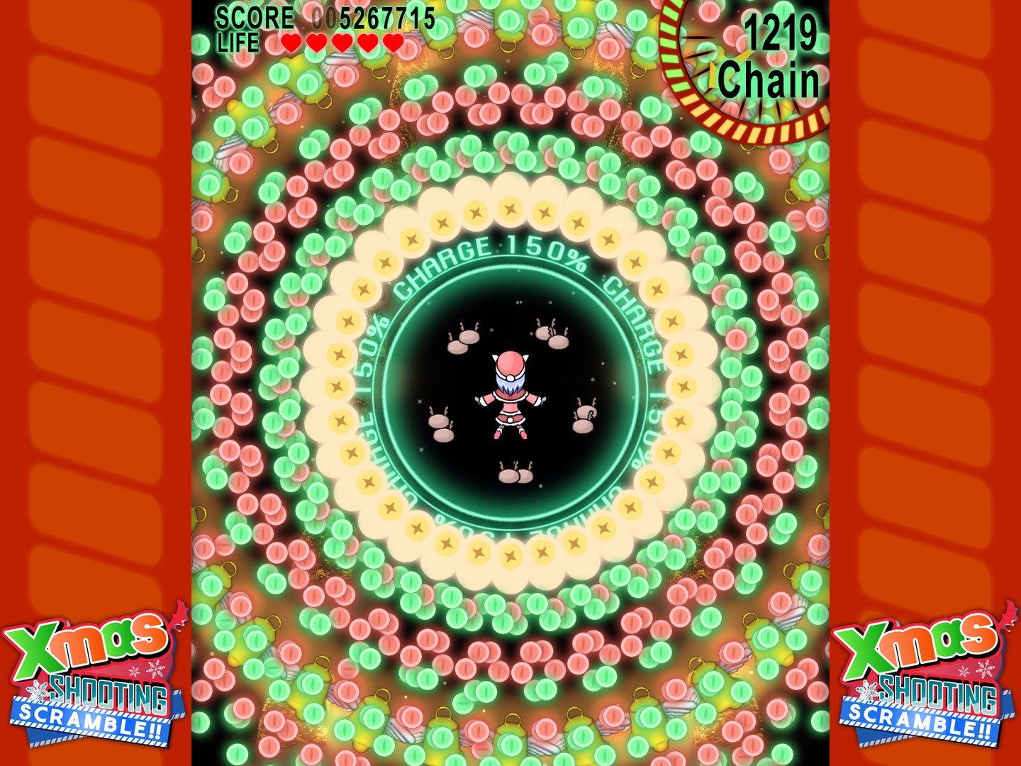 玩家操控可爱的妹子去打败各种敌人,找回给孩子们的圣诞礼物,轻松的背景音乐搭配酷炫无比的弹幕,绝对让你嗨个够。