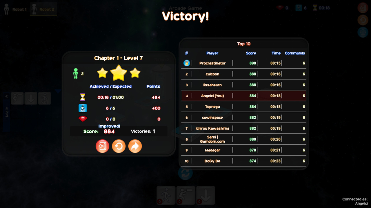 通过收集游戏中的所有宝石,获得最好的分数,获得更好的时间,并使用更少的命令达到胜利