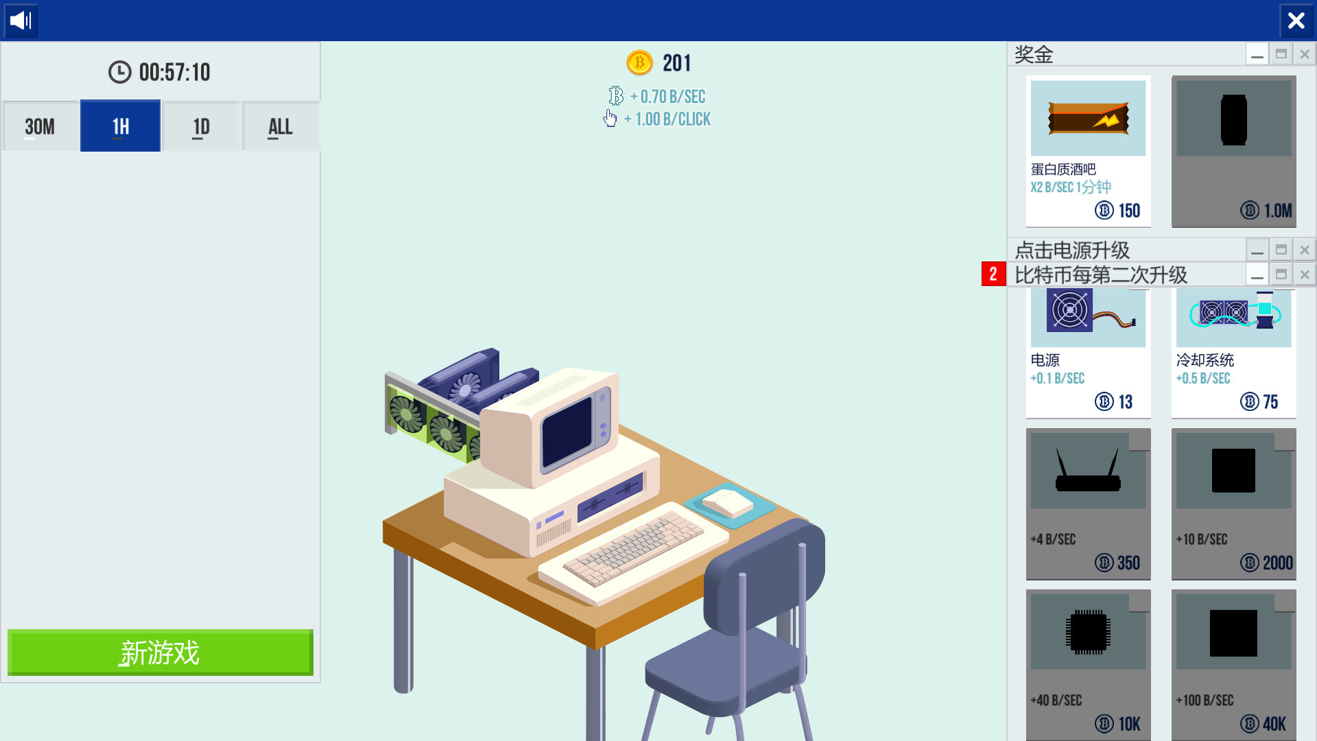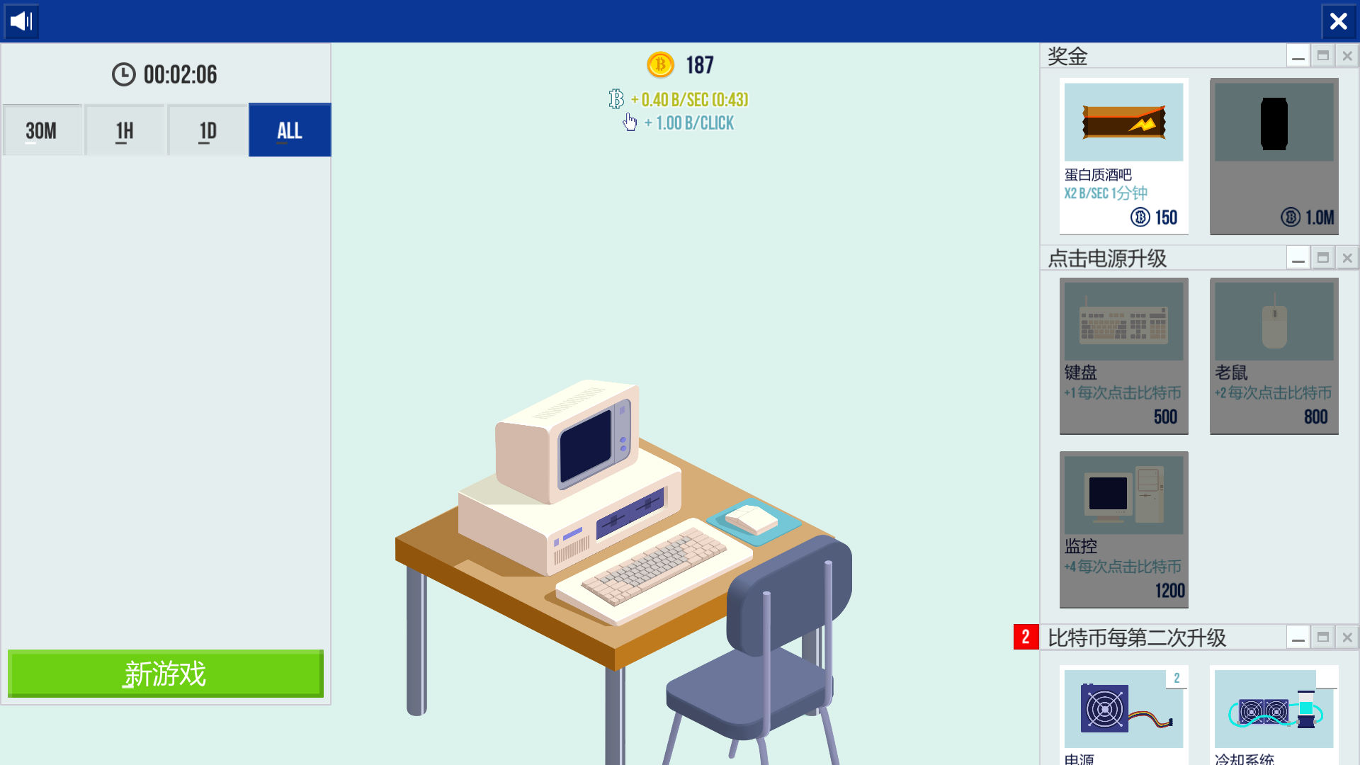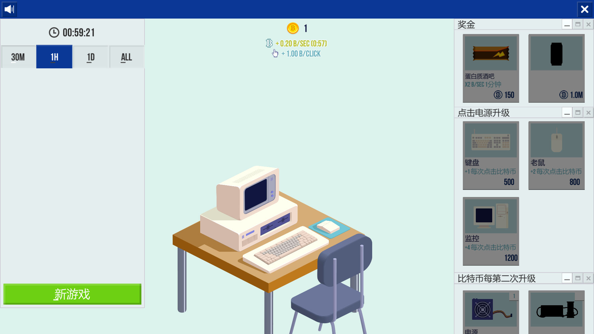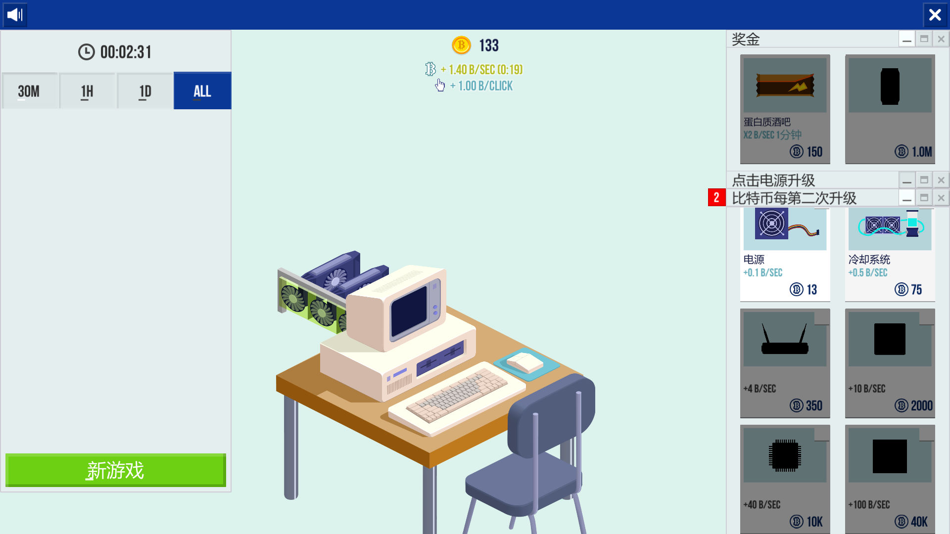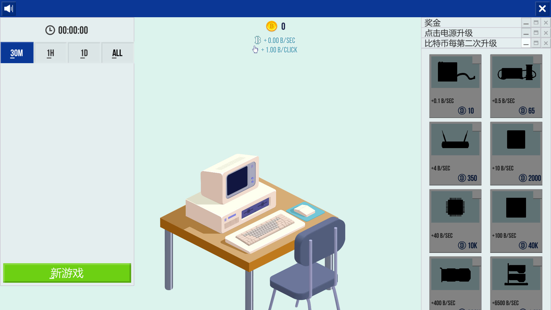 相信大多数朋友都知道比特币,但真正投资的却非常少,那我们来了解下关于比特币的信息;《加密货币点击器》是一款模拟经营游戏。以赚取比特币为主题,通过简单的点击获得比特币,金钱可以用来升级,加快挖掘的速度,随着财富的积累,你很快就能成为大富翁;想来挑战的玩家就下载玩玩!!!