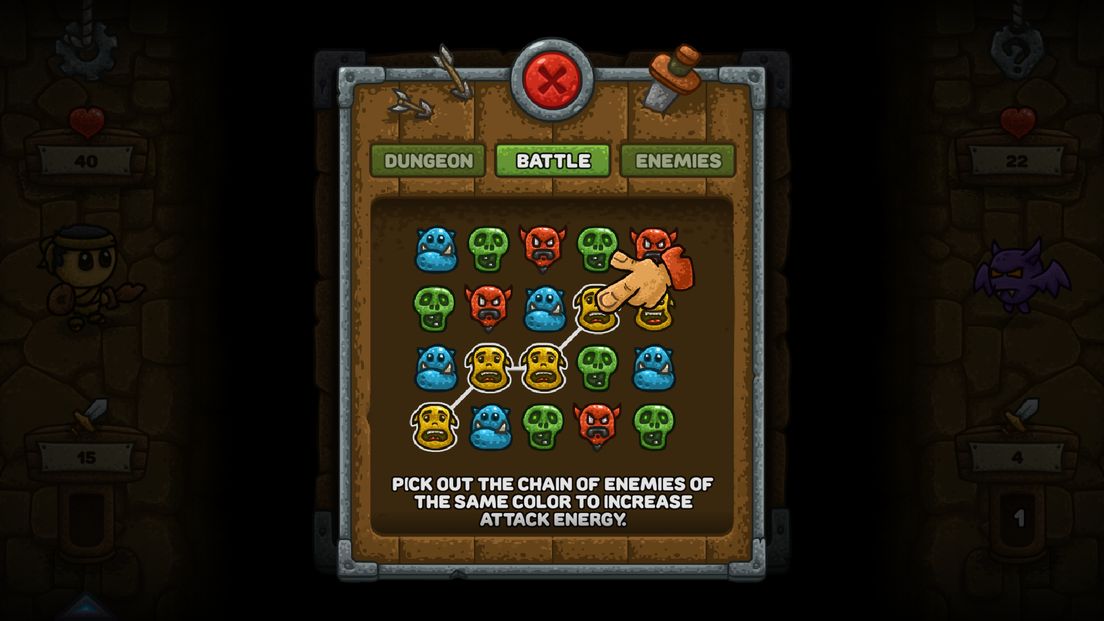 简中《英雄地牢》是一款三消益智小游戏。区别于传统的地牢探索玩法,本作加入了三消玩法,玩家需要通过消除来完成闯关,打败敌人,作为报酬你可以获得新英雄和道具,丰富而又吸引玩家的游戏剧情,让人忍不住往后继续展望。快来加入吧!!!