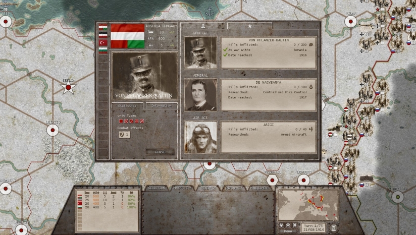 3、18种不同的单位类型,包括步兵、骑兵、装甲车和坦克、火炮、铁路炮和装甲车、巡洋舰、潜艇和战列舰、战斗机、轰炸机和飞艇。每个人都有自己的长处和短处,这是基于他们在整个战争期间各个剧院的历史表现。