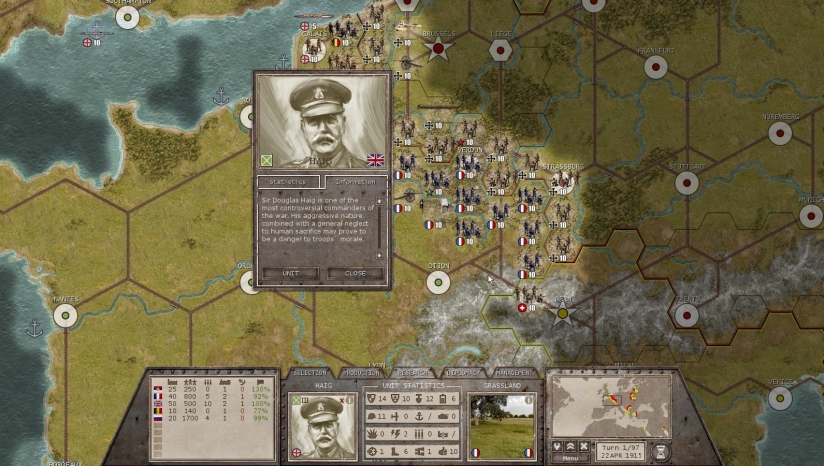 4、将历史指挥官附属于你的部队。每个人都有自己的特长,所以明智地决定哪一个指挥官最适合哪个前锋。有三种指挥官:地面部队将领、海上将领和空中司令部,以加强空军部队。