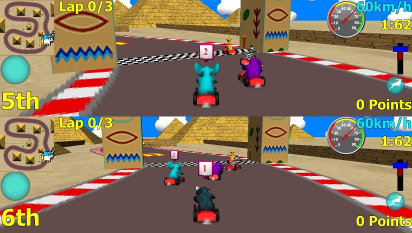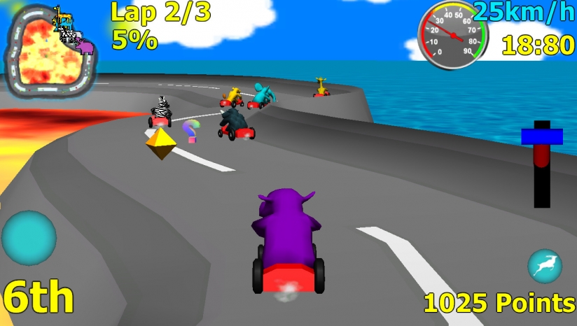 《野生动物赛车(Wild Animal Racing)》是一款欢乐鬼畜的赛车游戏,游戏类似跑跑卡丁车,但是司机换成了各种卡通动物。游戏里玩家可以收集道具使用,而且会根据你收集的钻石提升速度。另外,游戏的音乐具有魔性,戴上耳机体验更好。
