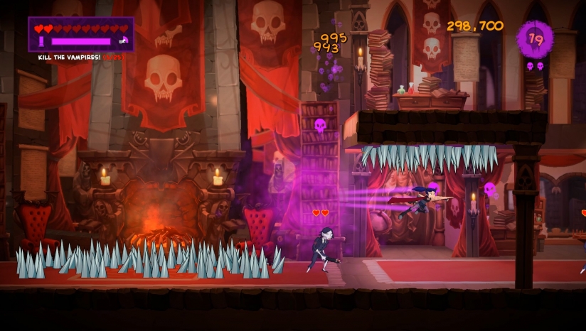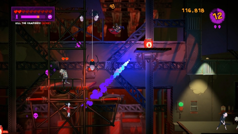 5人由Screwtape Studios开发《Damsel》是一个快节奏单人平台动作游戏。游戏设定了一个黑暗的卡通世界,玩家要扮演政府特工,为拯救世界和吸血鬼战斗。借助角色的速度和灵活性,通过十几个场景,应对各种各样的敌人。游戏提供了不同的模式,玩家可以挑战高分数,冲刺排行榜的顶端。