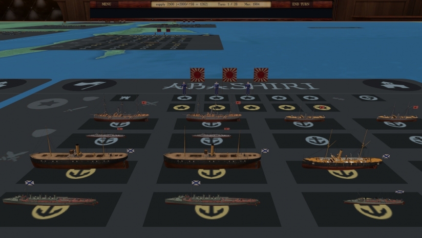 管理你的舰队和军队,追捕敌人的舰队,在受保护的港口隐藏你的薄弱中队,直到增援部队到达,封锁敌人的贸易路线,两栖攻击和港口围困,在转向的战略模式下争夺对海洋的统治权,所有这些行动都是可能的。铁装:库页岛1904。