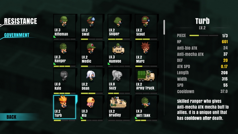 单位和技能通过战斗奖励自动升级。您还可以修理或升级任何所需区域与提供的降压。