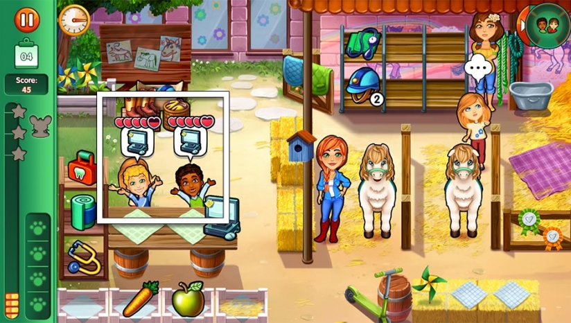10人《宠物医生:家庭实践(Dr. Cares - Family Practice)》是一款以宠物医院为主题的模拟经营类游戏。这一次,只有小狗和小猫需要你的帮助,因为你把注意力转向小马,甚至海豚,以及Snuggford周围的各种野生动物。Amy和Jack正在Snuggford生活,在Lisa和Crystal的帮助下经营兽医诊所。