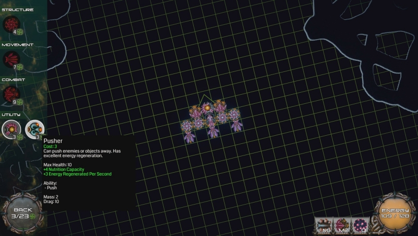 游戏给人的第一印象非常不错,里面的生物可以进行自定义设计,每个部位都有自己的特殊功能,你可以以此来创造出一种特别的怪物,不过游戏有些场景看起来有些恶心,尤其是像我这种有密集恐惧症的人真的很不适应。