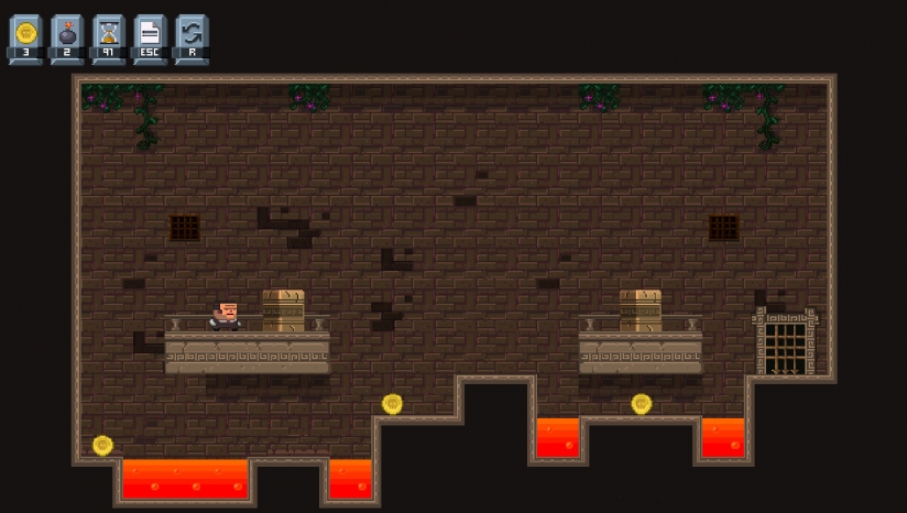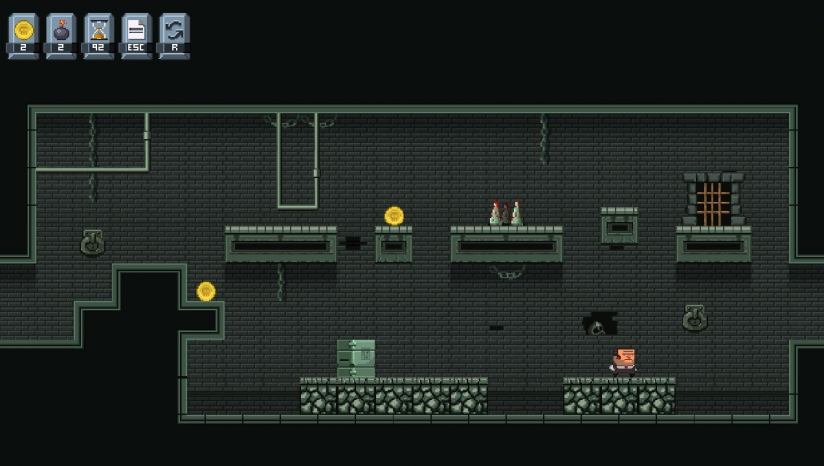 英雄的任务是需要通过30个关卡并收集所有硬币,小心那些精巧的陷阱和无情的敌人。此外,每个任务都有一个专门的房间,这对你十分不利,为了解决这些问题,英雄有一个非常铁的头,他可以借此来突破障碍物,利用炸药和铁头来摆脱敌人们。推开箱子,清理道路,解决谜题,打开门以通向下一个关卡。