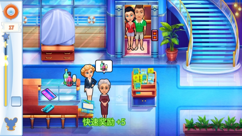 简中《爱之船:第二次机会(The Love Boat - Second Chances)》是一款时间管理类的卡通模拟经营游戏。该作满浪漫的爱情、滑稽的场景。您可以负责游轮总监的各种职务,并照顾乘客。不过,在这次一生中难得一次的航行中,当您从洛杉矶开往墨西哥之时,一定别忘了享受阿卡普尔科阳光明媚、风景秀丽的海滩,还有船上的各种奢侈品。哦,不要错过那儿的纪念品哟!