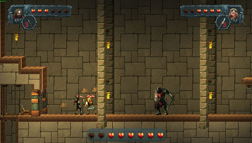 Sire Reed Abberbury和他的忠实朋友Gunnar,一个勇敢的维京人,是游戏的主角。他们需要穿过多宁顿城堡的炮台来报复叛徒的叔叔诺顿的奸诈。你会发现各种复杂的地形,危险的对手和各种致命的陷阱。使用战术,力量和敏捷来击败敌人并夺回他父亲的遗产!