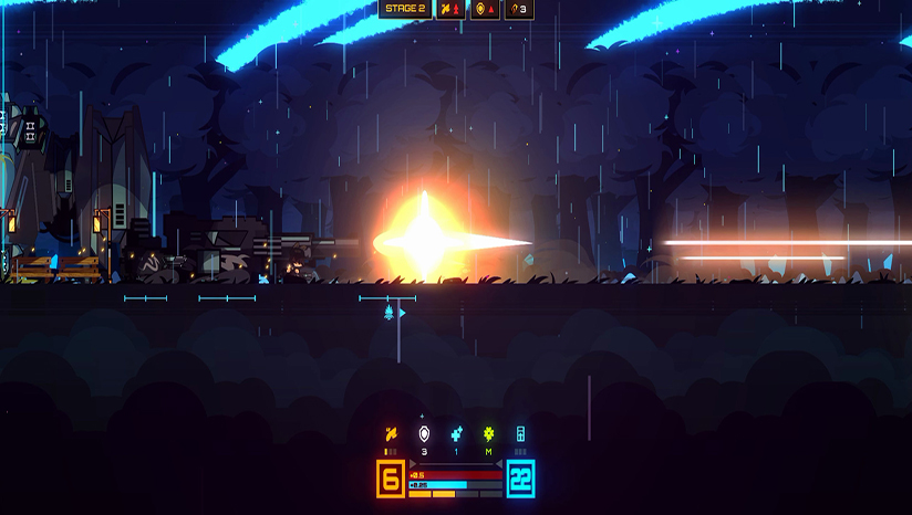 横版防守生存游戏,玩家要在左右进攻的敌人中生存下来,然后通过关底即可,关卡中有许多自动炮台供玩家协助防守,你要在敌人攻破你的防守之前打破通关的墙壁,最后的生存战难度比较大,可以尝试挑战一下。
