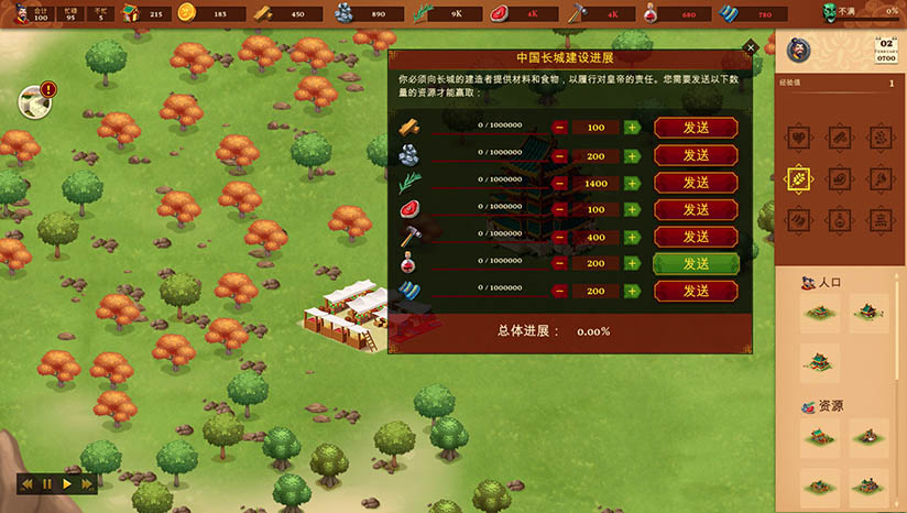 你被分配去管理一个在天堂帝国边界的小村庄。皇帝对你有很大的期望,因为你是一个真正的儒者,知道交给的问题的解决之道。陛下希望你能把这个小村庄变成一个繁荣富强的城市,它将成为边境上的一个据点。