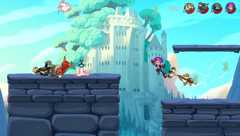 角色没有血量条,以耐力条代替,玩家需将敌人击落下擂台来获取胜利,这需要精确判断地形和把握时机。
