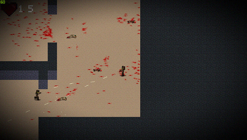 1人《Walls in Dead》是一款像素风格上帝视角的动作射击闯关游戏。游戏中玩家出生在一个迷宫里,每个房间被厚实的墙壁阻挡。你手中的枪械子弹是无限的,只要按住鼠标左键就能无限突突突,同样你的敌人也是一样,不过你的生命值比他们多多了。同时面对多个敌人很危险,地图上的血包位置也比较分散,合理安排才能通关。