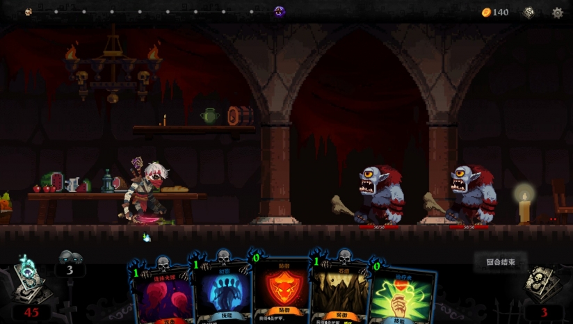 独特的玩法:你的生命值等于卡牌数量。每受到1点伤害,便弃掉1张牌,卡牌耗尽则游戏失败。