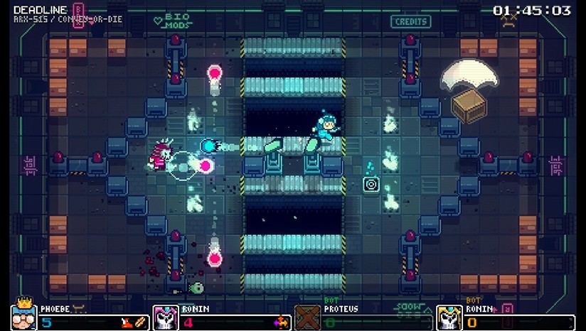 《隐身英雄(Invisigun Heroes)》是由Sombr Studio制作发行的一款像素风格多人对战动作游戏。游戏画面类似我们小时候经常玩的《炸弹人》系列,不过比较难的是游戏中所有的玩家都是隐身的,没错你自己也是看不到你自己的,不过不用担心,你可以通过地图上的脚印、枝叶的抖动和草地的凹陷来判断自己和敌人的位置。