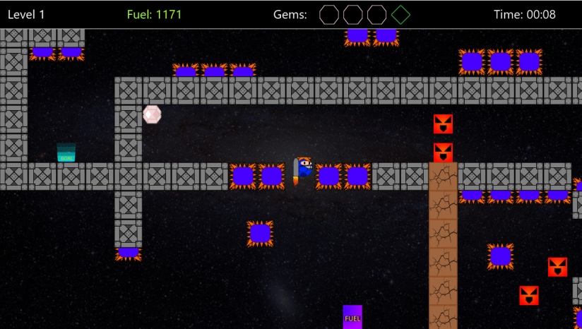 在游戏中玩家不能使用跳跃,取代的是一个飞行包,玩家操控着人物飞行穿越障碍,小心的是燃料用光时,飞行包会爆炸,请小心使用。