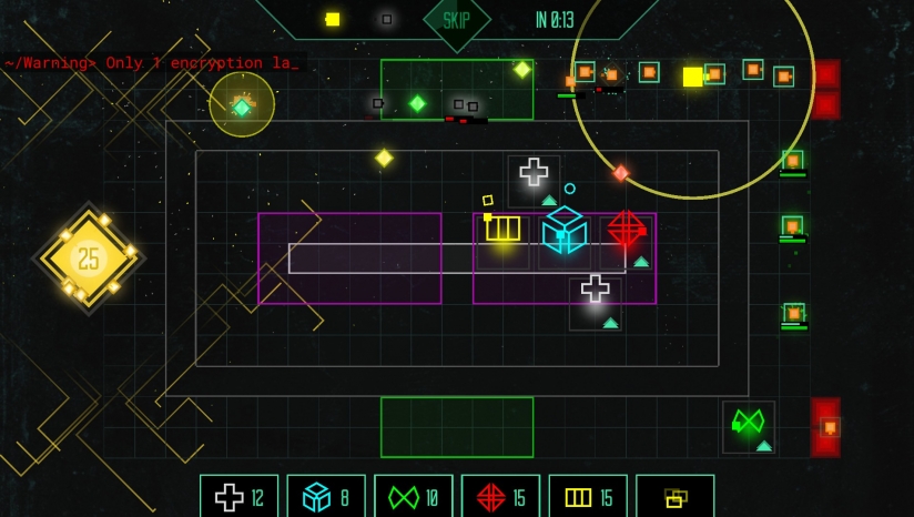 2人《数据防御(Data Defense)》是一款极简主义的塔防游戏。 在游戏中你需要保护您的数据服务器免受病毒破坏,为了达成这一目标,你必须合理对服务器进行布局,在战略要地设置防御程序,通过对30种不同的炮塔进行混合搭配来构建自己的特殊战略布局。