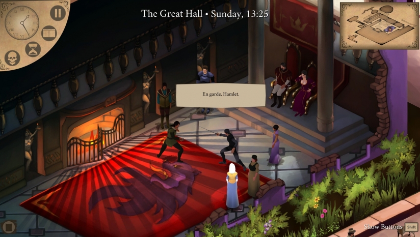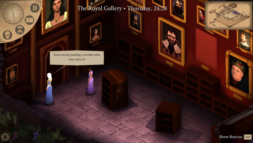 2人《埃尔西诺(Elsinore)》是一款点击式的探险类角色扮演游戏,时间每四天循环一次;其核心是莎士比亚与马略拉的面具/土拨鼠日的相遇,我们正在尝试将故事创作机制结合起来,创造出一种全新的感觉。