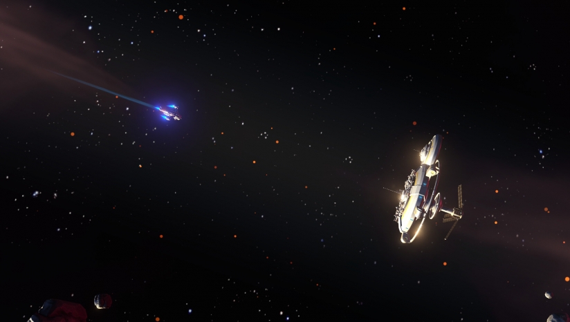 爆炸穿透一个由太空海盗巡逻的充满水晶的系统