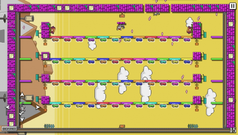 游戏是闯关模式,简单的十字键变换重力下落方向,利用各种各样神奇的道具,越过稀奇古怪的机关。