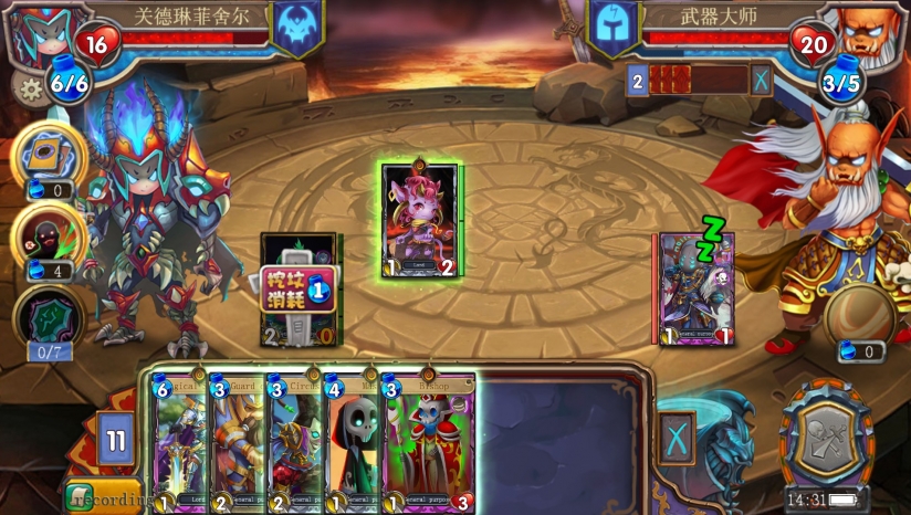 4.卡牌可以献祭,拖动卡牌到手牌区的右边,献祭后获得更多的能量