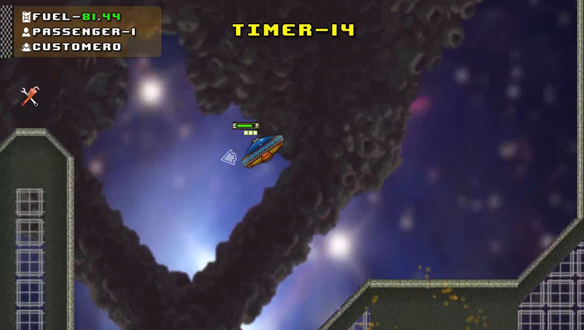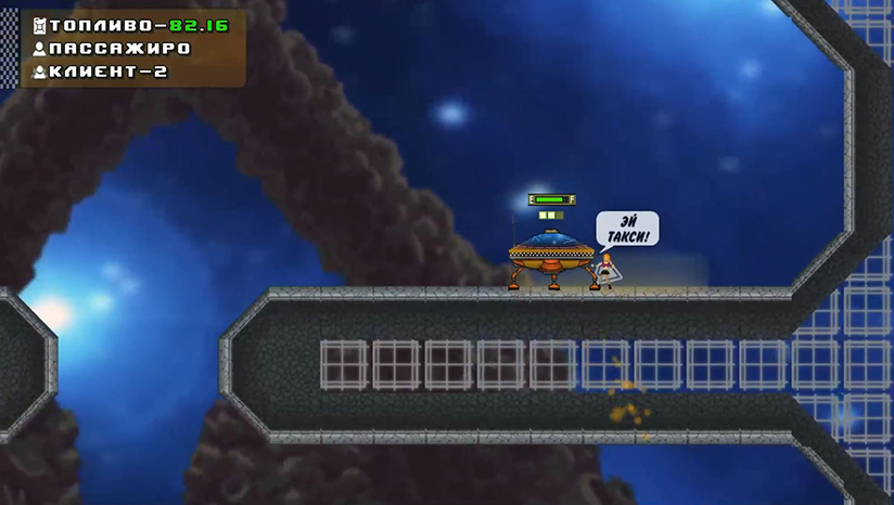 这是一个街机游戏,玩家扮演太空出租车司机的角色。