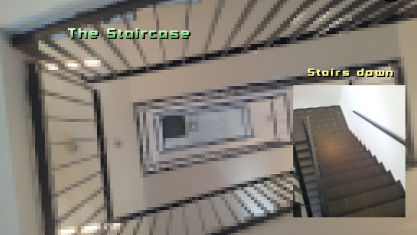一个老式的点击科幻神秘冒险游戏,设置在未来的建筑。