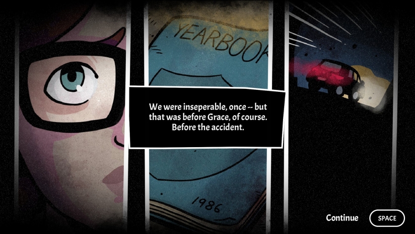 主角Holly最近刚刚回到故乡面对她充满疑团的过去,而她最好的朋友Flynn的未婚妇近期刚因事故丧生。由此引来了一股神秘力量绑架了Flynn并威胁到Holly。Holly必须面对过去、拯救朋友并活下来。 该游戏混合了像素和卡通风格,在高中母校中躲避神秘实体、解开谜题并勇敢的面对自己的过去。游戏中使用计量表来显示神秘实体与主角的距离,Holly一旦发出声音就会提高计量表,使神秘实体更接近主角,玩家需要通过隐藏来削减计量表,避免比死亡更糟的结果。