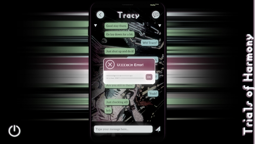 1人《和谐的考验(Trials of Harmony)》是一款交互式推理视觉小说类冒险解谜游戏。在这个黑暗的故事里,你会发现自己被囚禁在数千英尺深的地下,被迫带领一群幸存者通过一系列危及生命的游戏。
