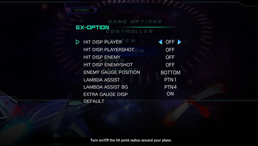 可在选项中变更难度,剩余机体数,炸弹数等设定。