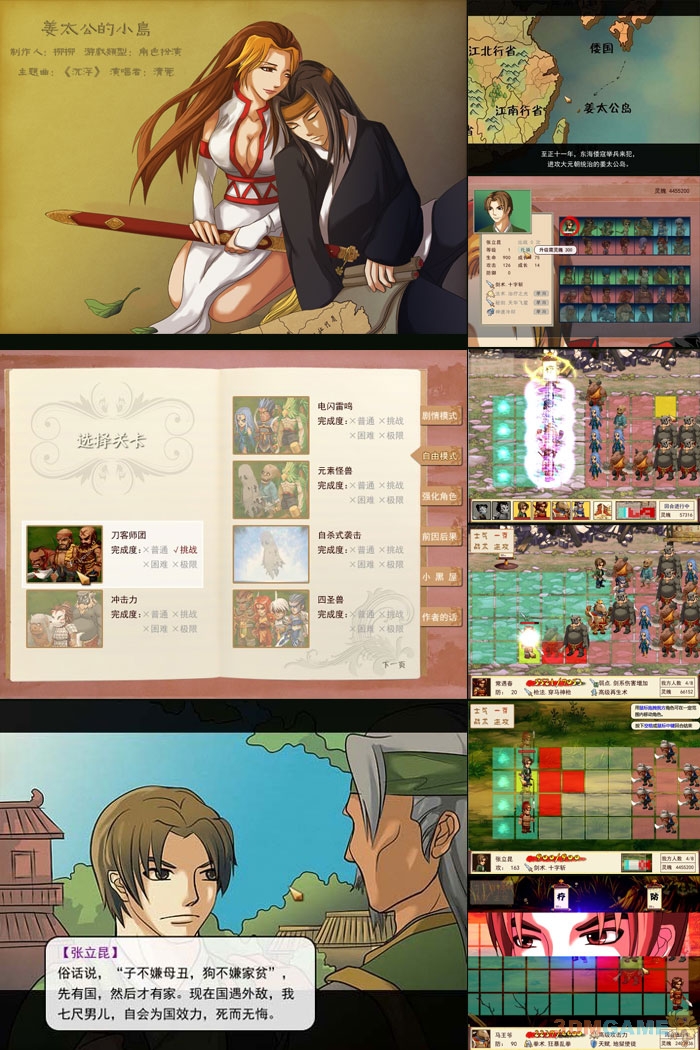 《姜太公的小岛》是一款角色扮演类游戏,元朝末年,倭寇攻打姜太公的小岛,爱国青年张立昆、常遇春等人自发乘船前往姜太公的小岛保卫祖国.在岛上战斗的时期,他们遇到各种让他们感到困惑的事情,也见到了有着不同背景的人:有情有义的狐妖,甘做汉奸的大叔和小萝莉,冷酷无情的剑圣……等在命运前方的究竟是什么呢?这是复兴的盛世时代,这也是一个被华夏子民遗忘了国之四维的时代……