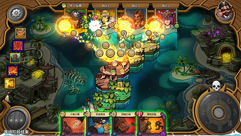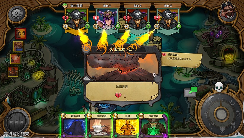 游戏最多支持四名玩家,岛上探险的玩法给人以新鲜和神秘感,卡组的存在让游戏的策略性和随机性以及可玩性都有了很大的提升,而背后捅刀背叛队友这种骚操作也是趣味十足了。