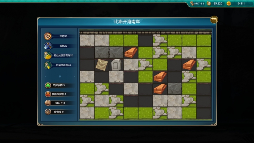 探索:不想简单的就是搜索,搜索, 挖宝嘛,当然得有点挖宝的感觉了,所以做成了砸砖块的玩法,还要配合上你的副官能力,也是刷材料的好地方。