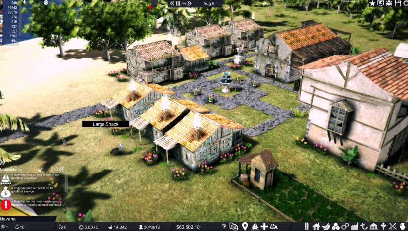 25人《糖厂(SugarMill)》是一款沙盒村庄建造类模拟经营游戏。在游戏中玩家从几个家庭开始,您将设法生存并繁荣发展。您可以建立一个港口来进出口货物。但是,有一个名为“港口信誉”的指标,该指标决定了船只访问您港口的频率。另外,海盗也就在附近,如果“海盗威胁”指标太高,您将输掉游戏。