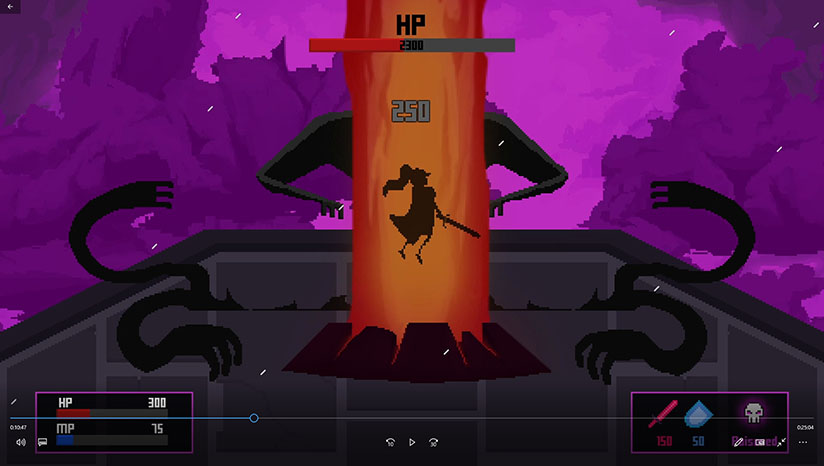 本作是一款简短的游戏,您将从主人公的旅程的结尾开始,直到最后的boss战斗。当然游戏开始的boss战斗你肯定会输,但这并不妨碍你正常进行游戏。你可以从头开始慢慢体验成为强者的快感。
