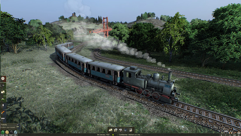 您将在一个平凡的起点上建造起一个庞大的运输网络体系:从使用蒸汽机运送煤和木材开始,一直到(未来要加入游戏的)磁悬浮列车运输高科技电子元件。