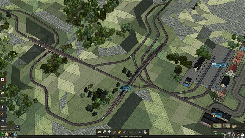 您可以仅仅建造联通两个车站的简单铁路;也可以去设计一套深谋远虑的交通网,使用各种岔口布局和信号机调控来最大化荷载效率。