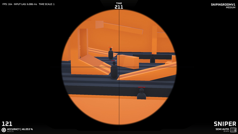 一款花样繁多的练枪软件。简洁的画面设计与风格。在这款软件当中,有超过30中不同的官方设计的模式,可以自己选择不同的难度。玩家可以根据自己的能力水平选择适合的难度。